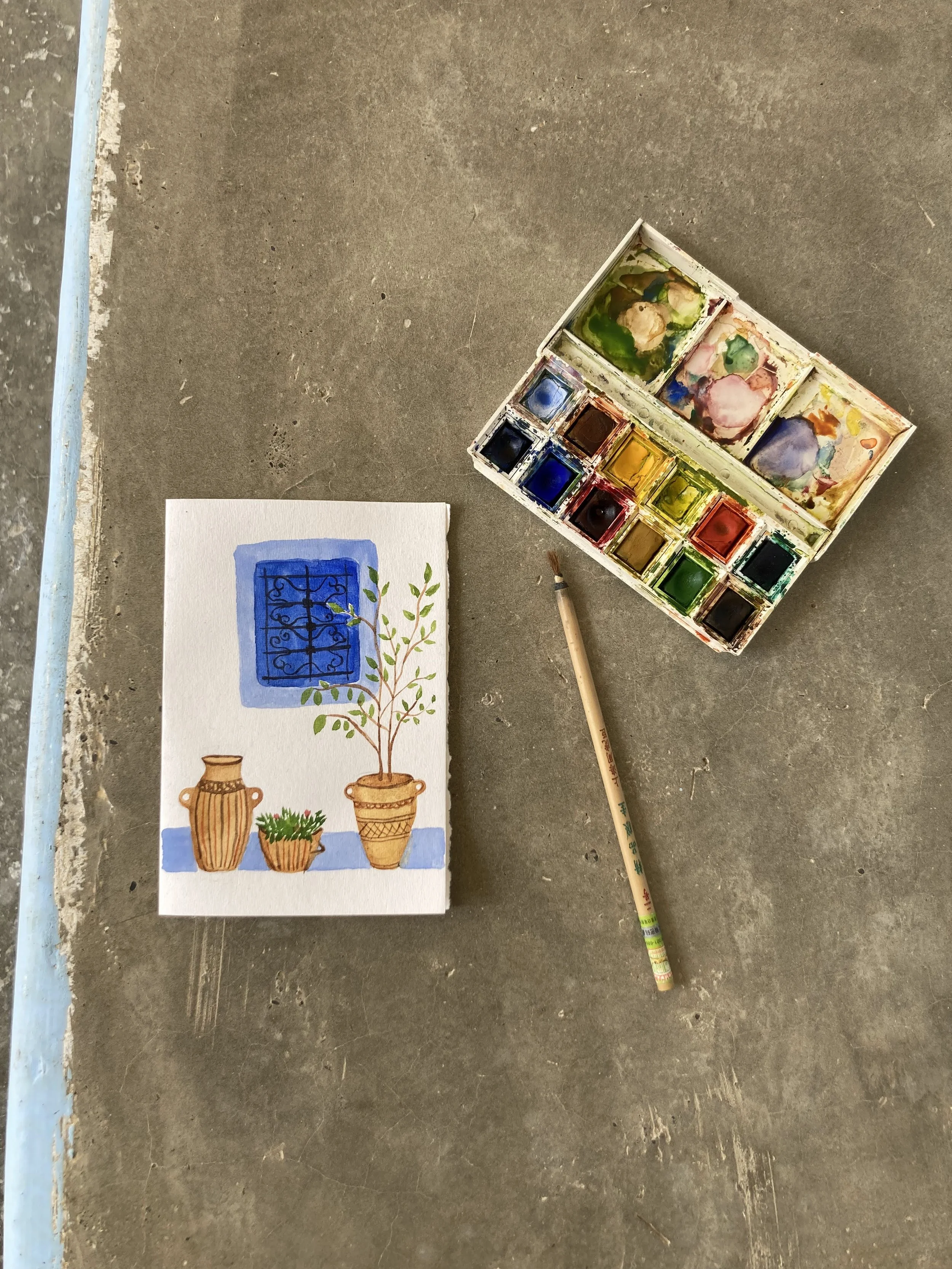 It was an incredibly special experience, living with Mama Aichas family, enjoying the delicious home cooked meals made by her daughter in law Samira, going food shopping in the market in Ourtzagh, bustling and full of colour, and watching the sun set each night over the lake. We also visited Samira’s parents, her father is a weaver of beautiful baskets, and on the walk home on the mountain paths we met a shepherdess who let me cuddle her lambs (I tried to explain that my family also rear sheep!). It was very sad to say goodbye, and I hope to return to this wonderful place one day.